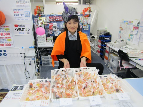 2018年10月29日(月) 当店でアスクうきま保育園の園児が来店し、ハロウィン行事を行いました。
